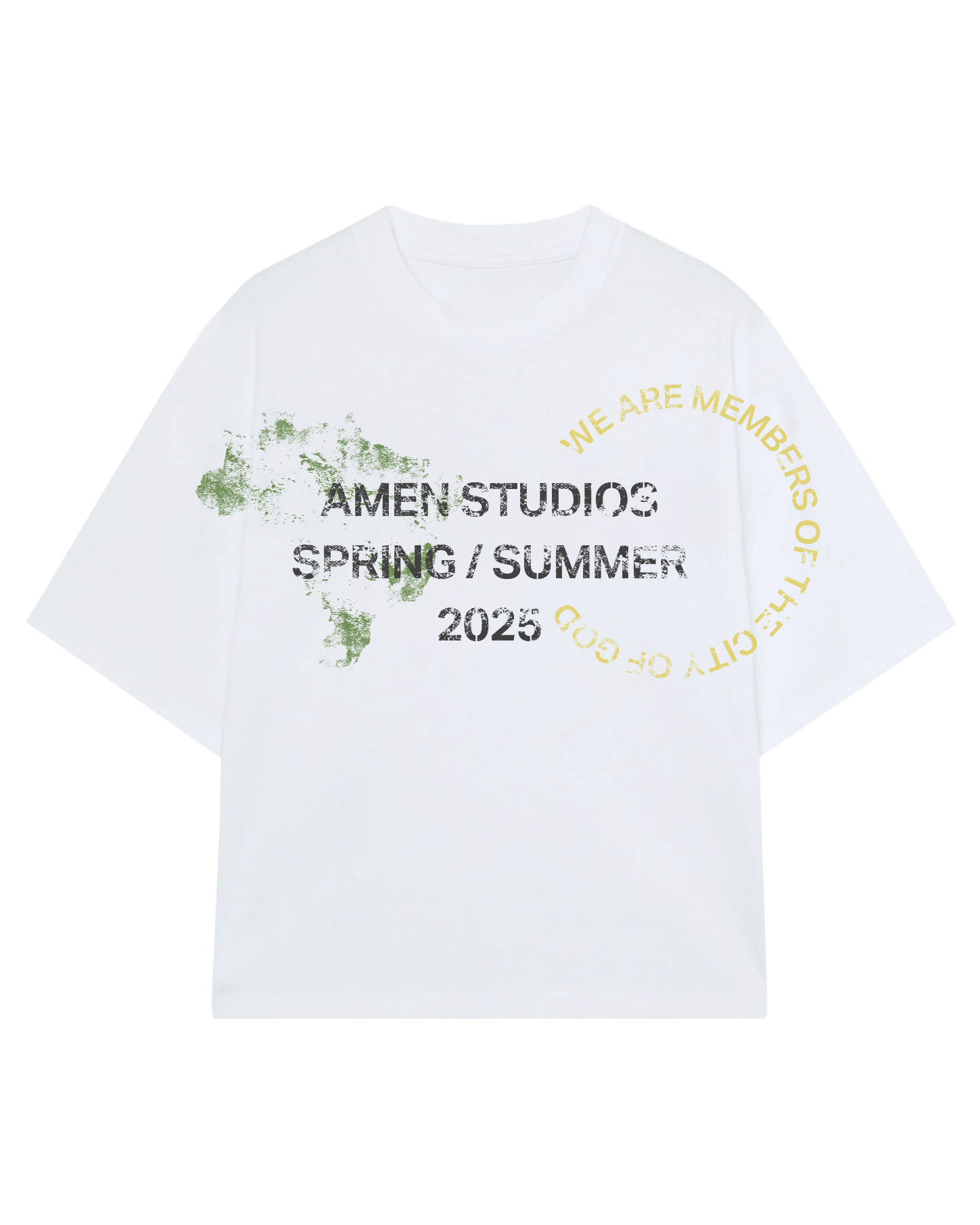 The God's Favorite Child T-shirt is made from premium, pre-shrunk 100% cotton suede with a heavy weight of 230GSM and a soft touch. It features an oversized Amen-style fit, wider sleeves, and a 1/4-inch collar. It features silkscreen printing on the front and back, using techniques for a vintage effect.