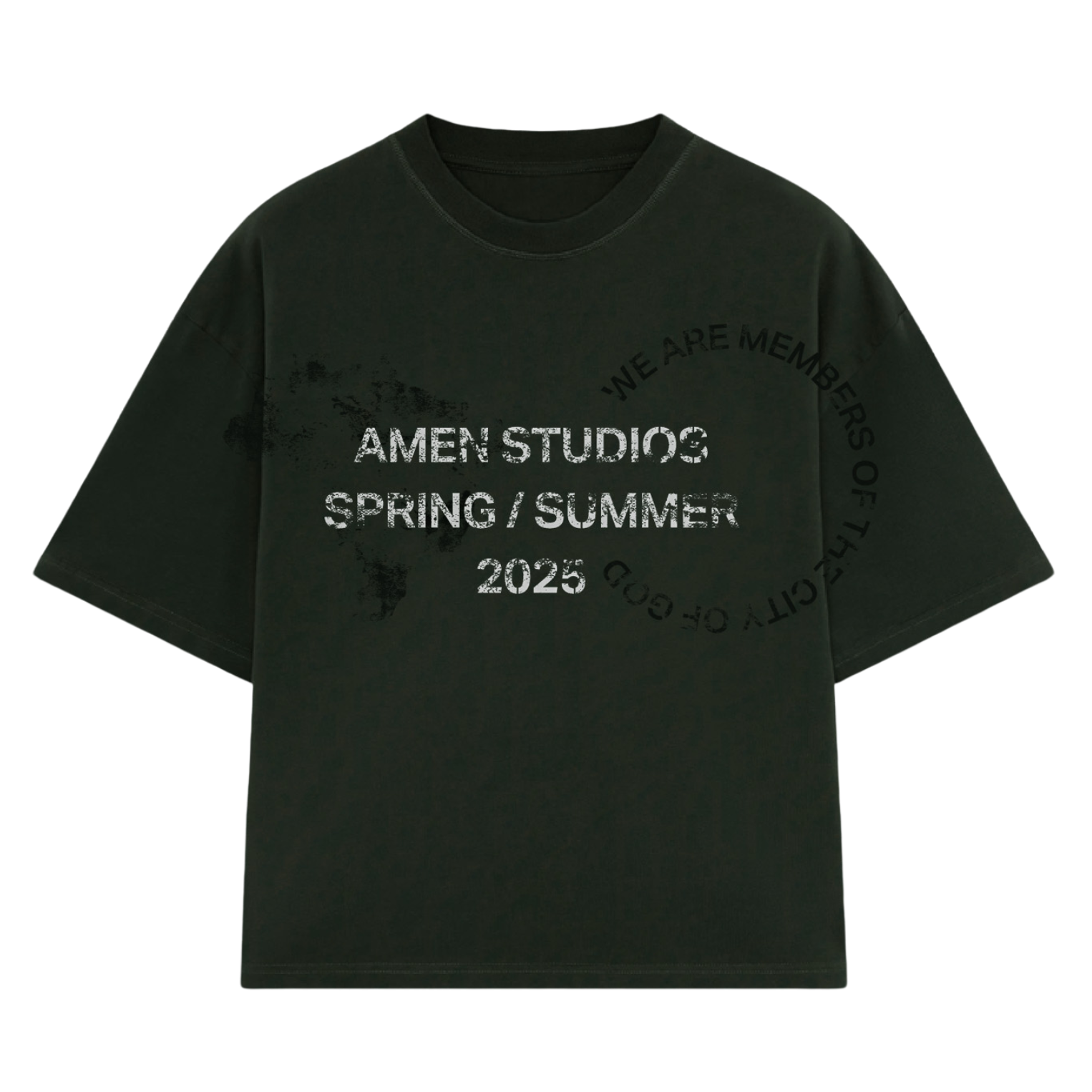 The God's Favorite Child T-shirt is made from premium, pre-shrunk 100% cotton suede with a heavy weight of 230GSM and a soft touch. It features an oversized Amen-style fit, wider sleeves, and a 1/4-inch collar. It features silkscreen printing on the front and back, using techniques for a vintage effect.