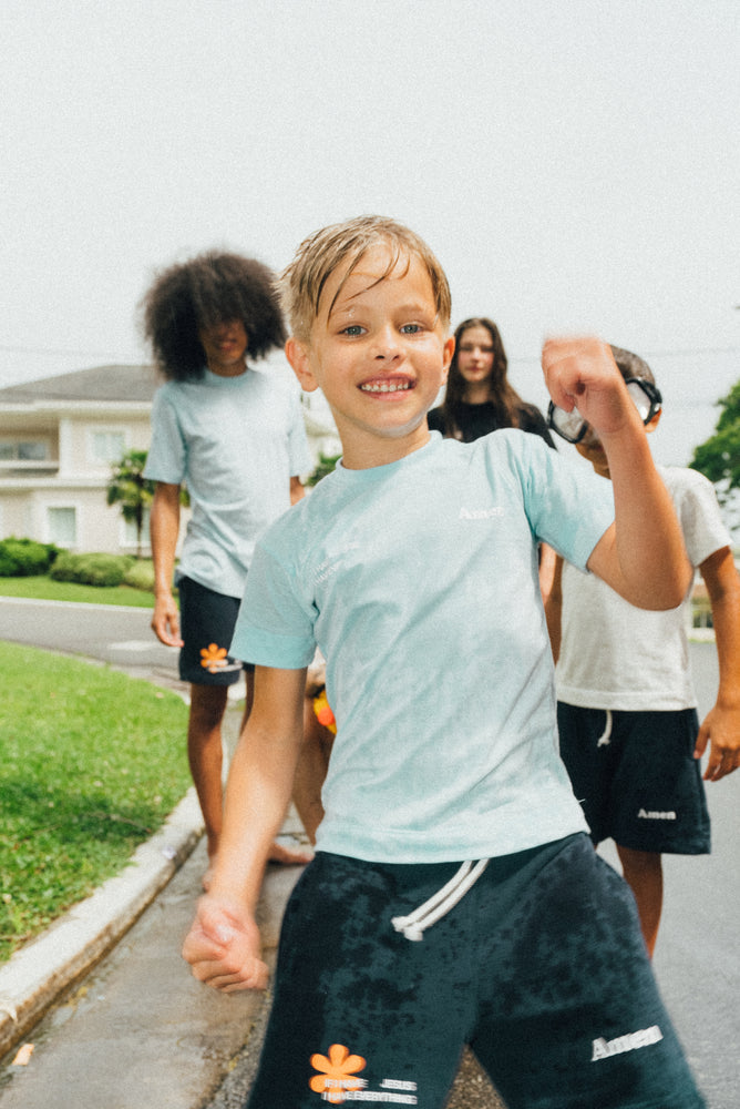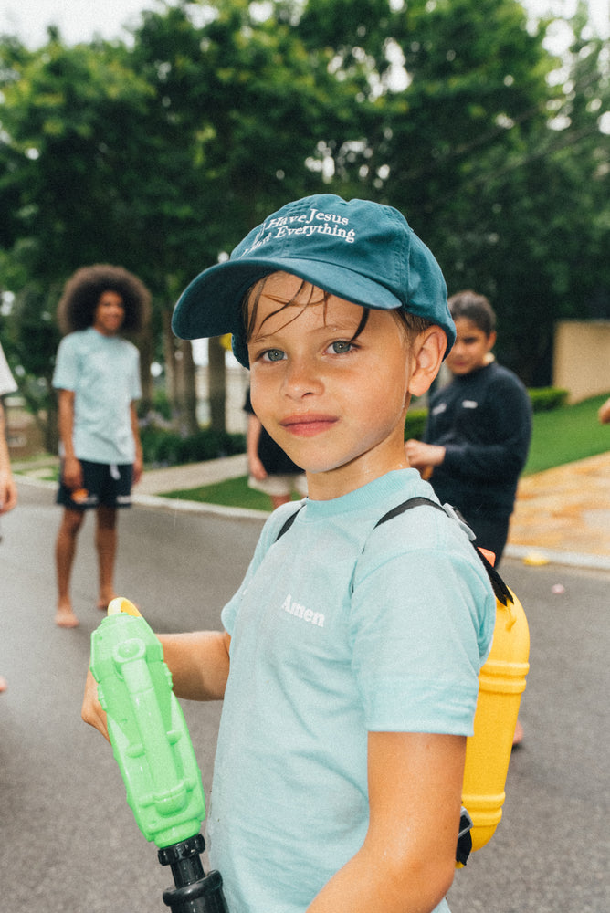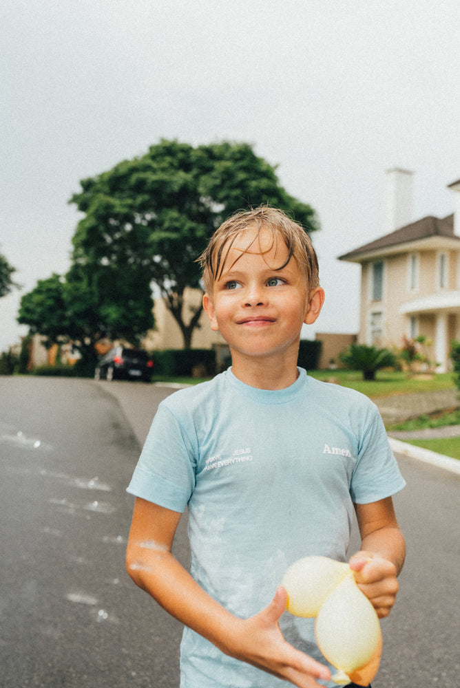 I JUST NEED JESUS BLUE KIDS T-SHIRT