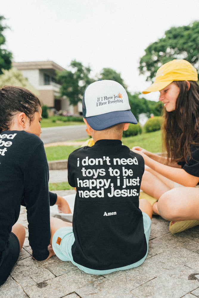 I JUST NEED JESUS BLACK KIDS T-SHIRT