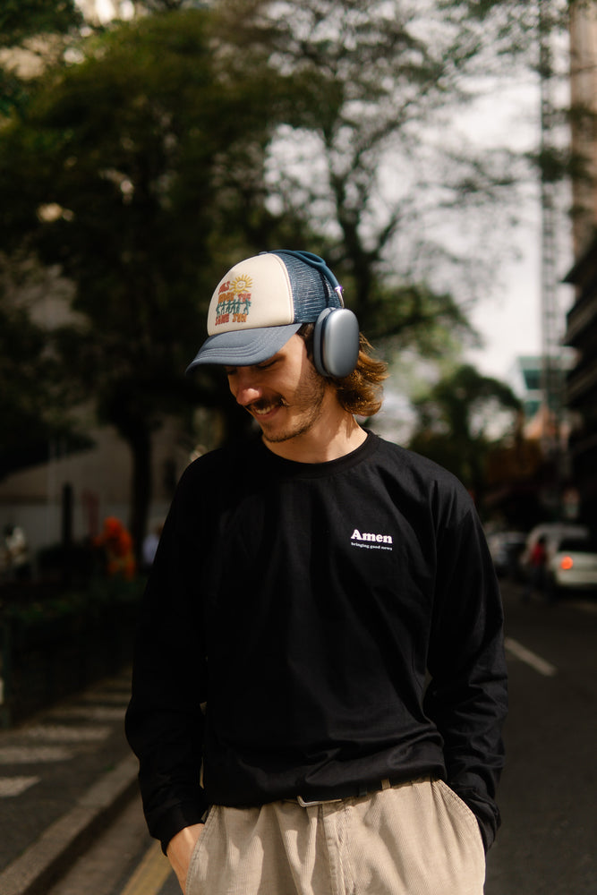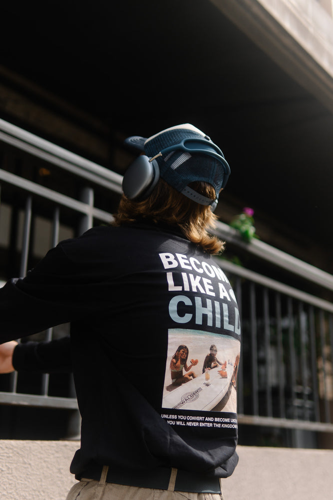 Black long-sleeve t-shirt with an oversized fit. Made from 100% recycled cotton, it's incredibly soft to the touch.