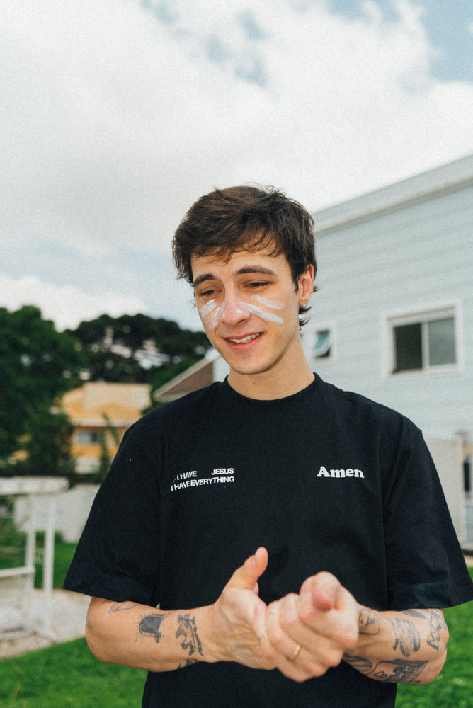 Davi is 1.84m tall - 73kg and wears a G / Henrique is 1.82m tall - 70kg and wears a G / Emily is 1.72m tall - 55kg and wears a P
