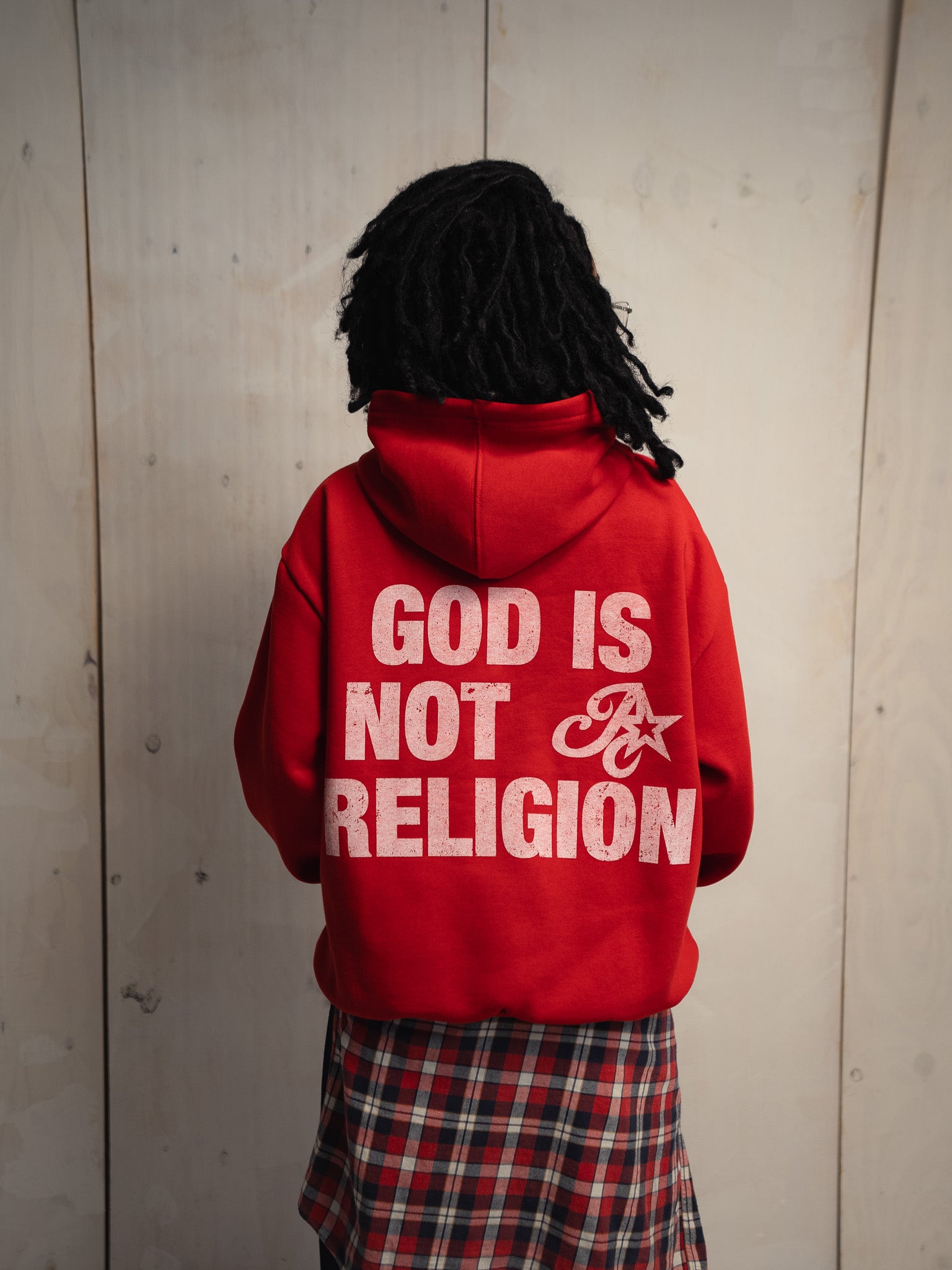 The God Is Not a Religion Sweatshirt in Vintage Cherry is made from 100% cotton, 340gsm, unbleached fleece. This sweatshirt is pre-shrunk and washed for a distressed effect. It features a silkscreen print on the back, with distressing and minimal overlay techniques, for a vintage aesthetic. Amen's standard oversized fit, with a slightly shorter length .