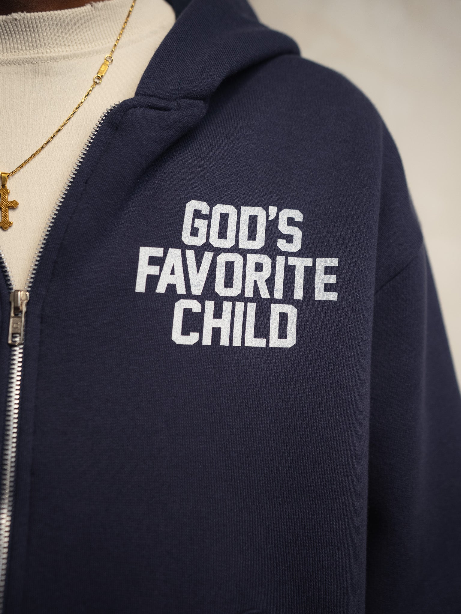 GOD'S FAVORITE CHILD ZIP UP NAVY SWEATSHIRT