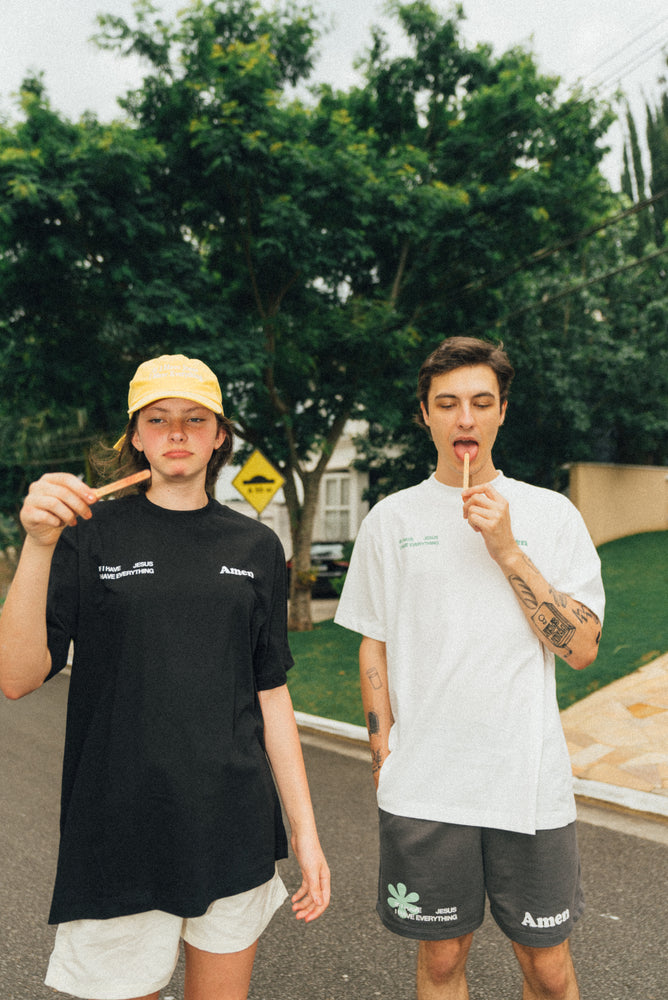 As peças são oversized. Recomendamos que você pegue o seu tamanho para que fique um look oversized/mais largo ou um tamanho abaixo para que fique normal no corpo.